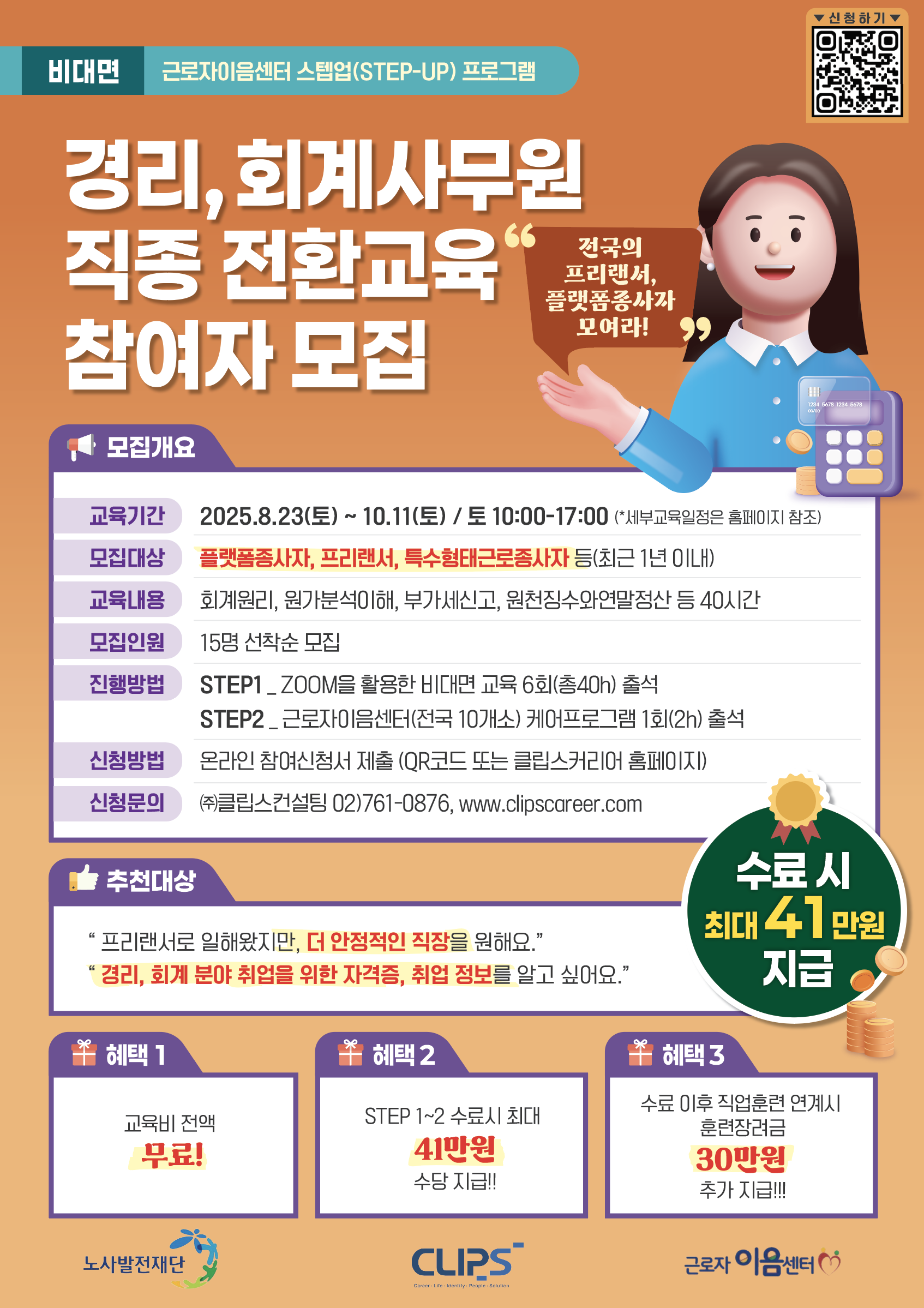 경리 · 회계사무원 직종으로 경력전환을 희망하는 분들을 위해 근로자이음센터 스텝업(STEP-UP)프로그램에서 준비한